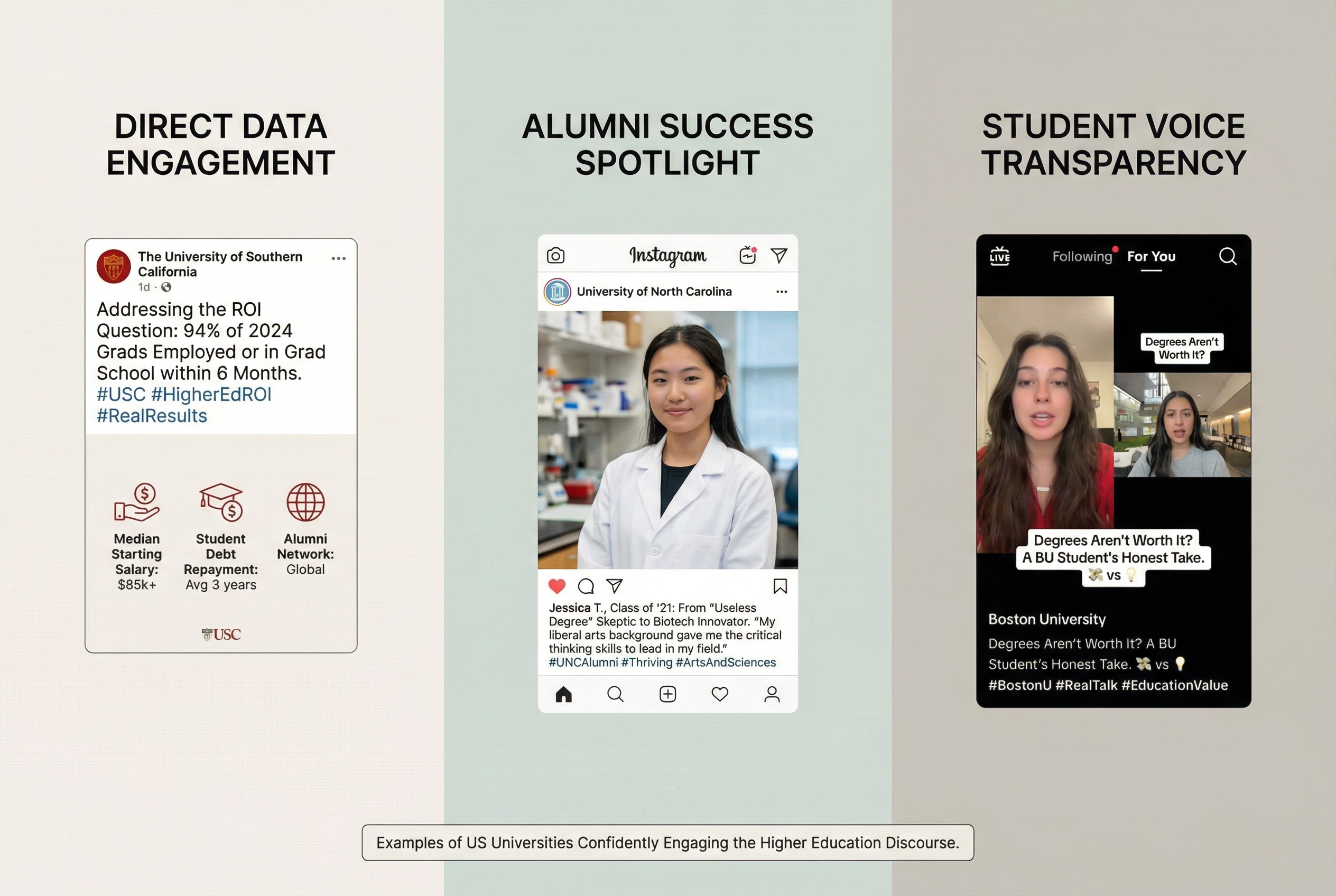 Parents are thinking about ROI. Students are thinking about their identity. Outcome evidence bridges both.